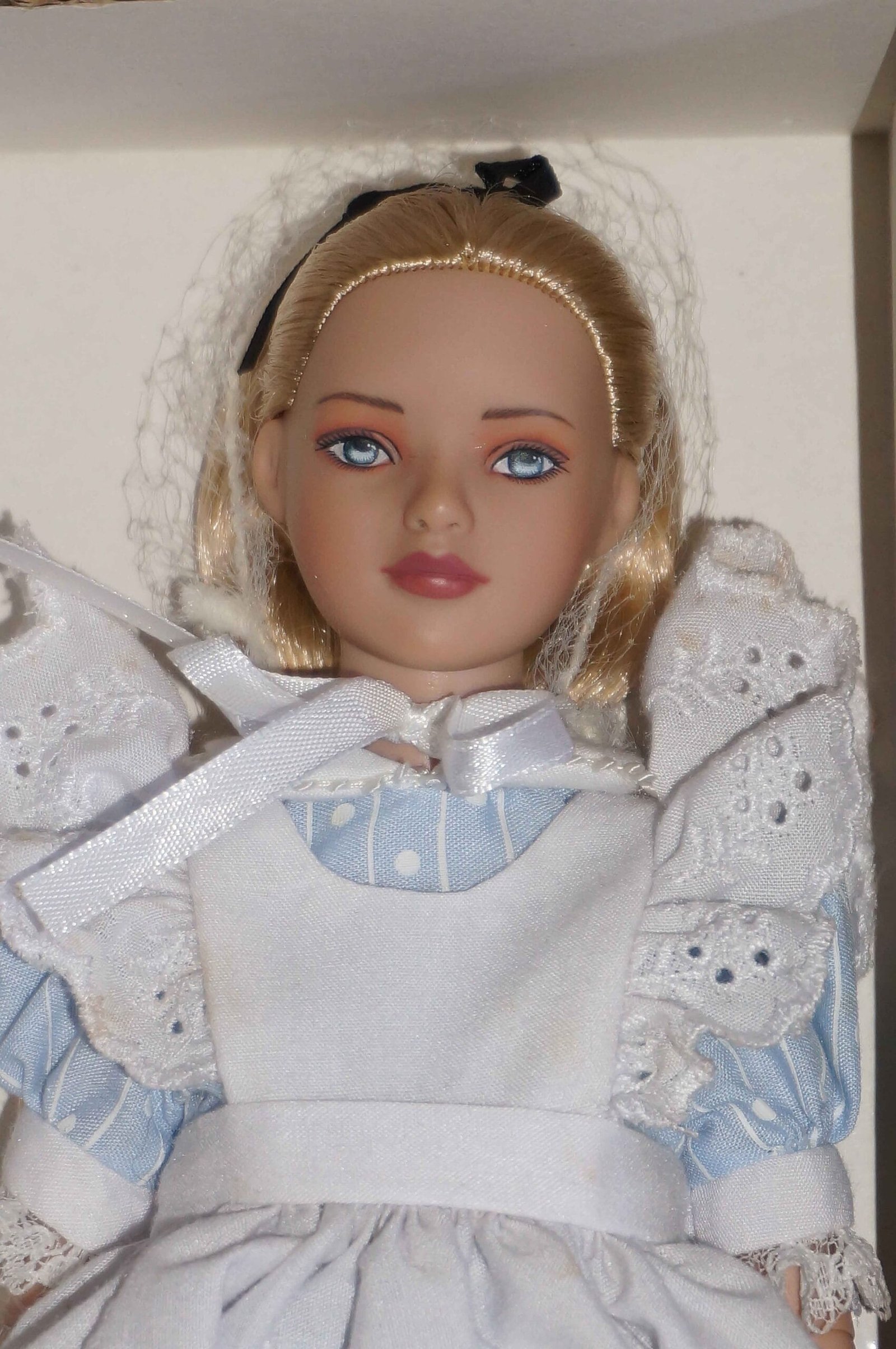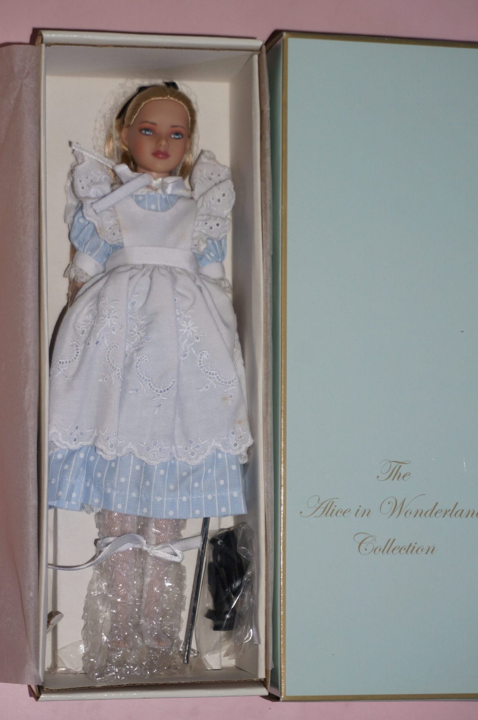Beautiful 12″ Classic Alice by Robert Tonner who has the Marley Wentworth child body.  She comes as new in her original box, with all original outfit, shoes and stand.  A very hard to find and sought after doll.