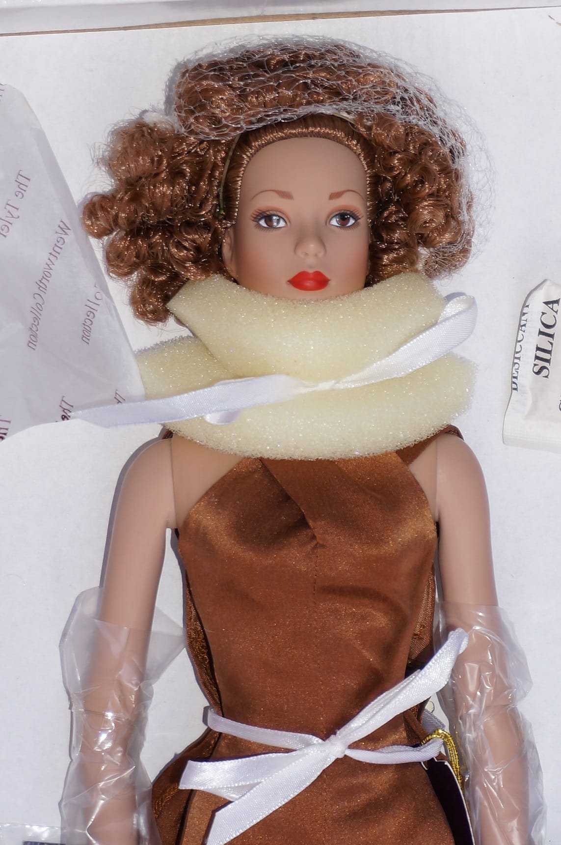 Beautiful Tonner Tyler doll, as new in box with accessories attached. This is the especially rare cocoa version of the Cinema Satins doll from 2004, she is a limited edition of only 100.