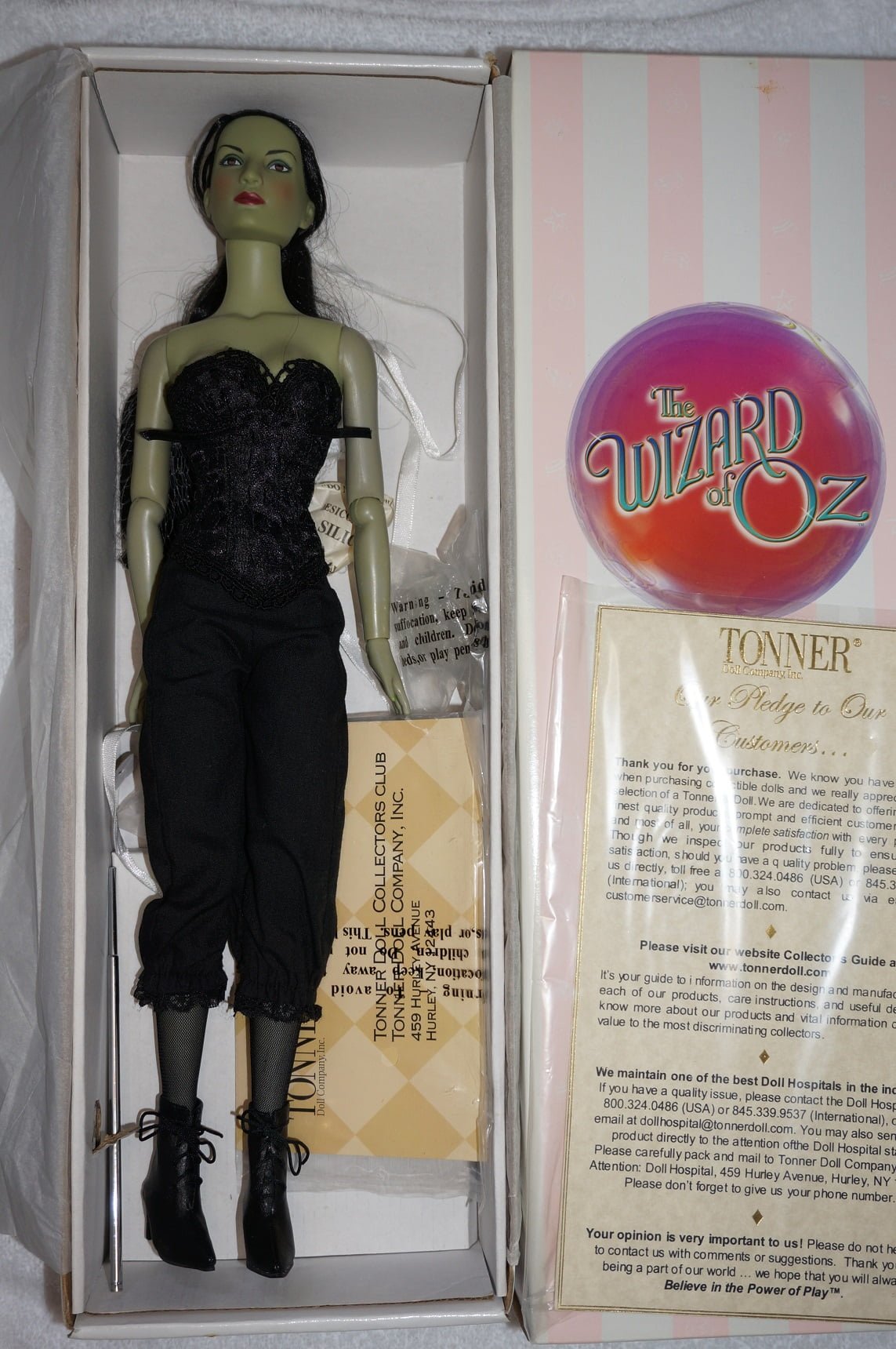 Basic Wicked Witch from the Wizard of Oz. Comes complete in her box, with her adorable boots and her yellow brick road stand (note that the stand is quite heavy, so the shipping cost is higher because of this.). There arms are slightly paler than the torso.