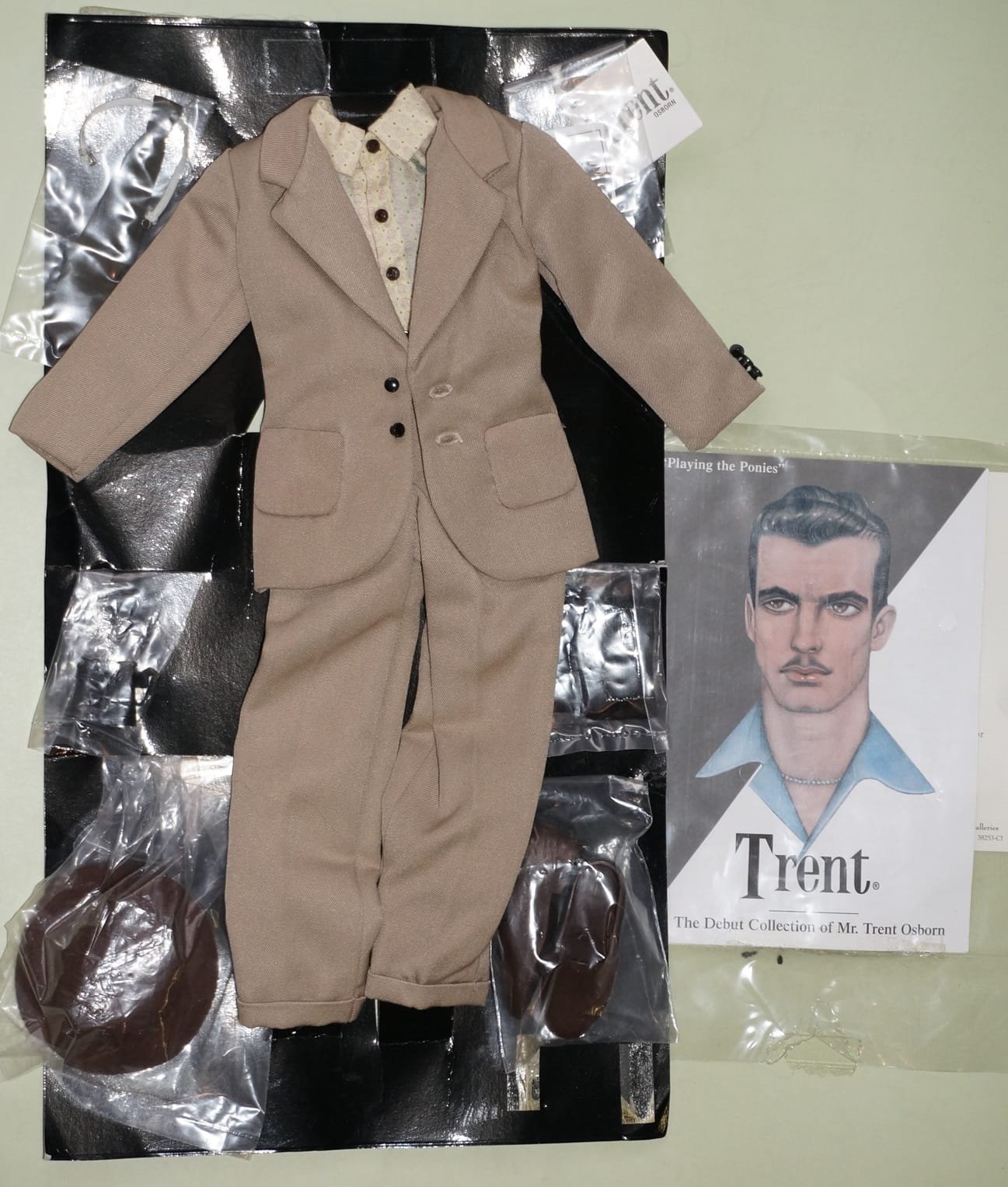 Hard to find outfit for male doll Trent Osborn, companion of Gene Marshall. The outfit is called Playing the Ponies and it is complete and never removed from its backing card. Condition is as new. This may also fit other 16 inch male fashion dolls.